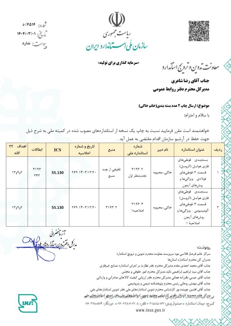 در ادامه، فهرست استانداردهای ملی که بهتازگی چاپ یا ابطال شدهاند، جهت اطلاع و بهرهبرداری علاقهمندان و متخصصان این حوزه ارائه میشود.