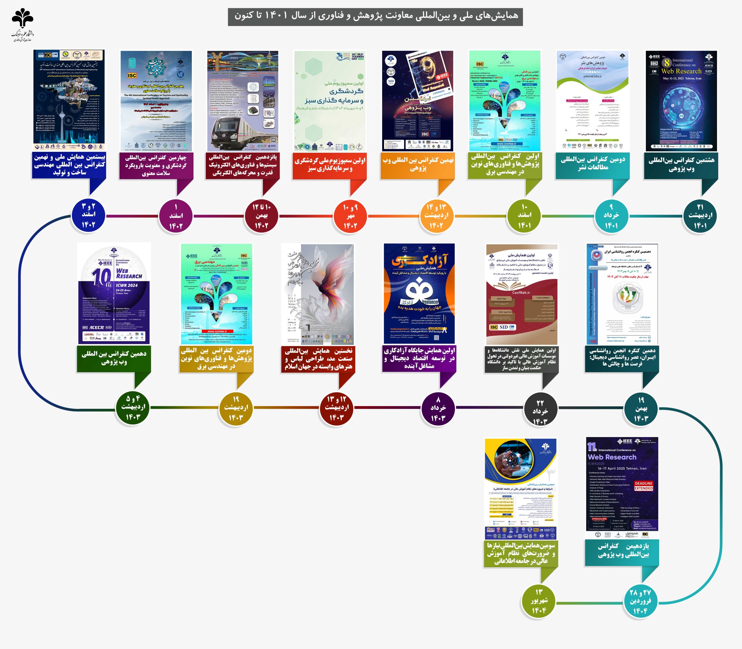 | 32 | هشتمین کنفرانس بین المللی وب پژوهی | 1401/02/21 | علوم کامپیوتر, تکنولوژی اینترنت و وب | ۰۲۲۲۰-۹۵۱۴۴ |