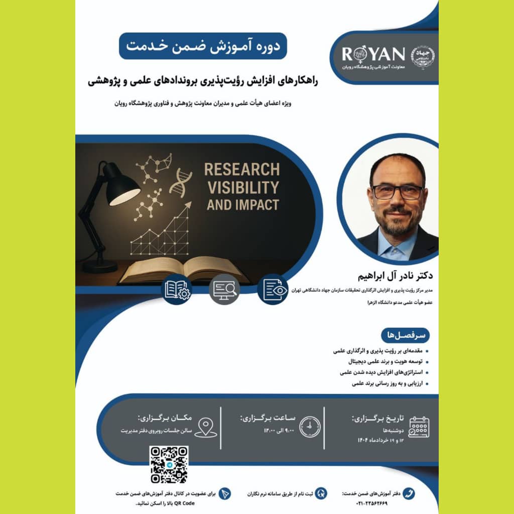 نشست «راهکارهای افزایش رؤیتپذیری بروندادهای علمی و پژوهشی» با ارائه دکتر نادر آلابراهیم در پژوهشگاه رویان برگزار شد و فضایی کاربردی برای آشنایی با اصول نوین اثرگذاری علمی ایجاد کرد. در این برنامه درباره استراتژیهای ارتقای کیفیت مقالات، شاخصهای جدید ارزیابی پژوهش، و مسیرهای افزایش دیدهشدن نتایج علمی بهشکلی دقیق و عملی صحبت شد. اگر میخواهید ببینید چگونه میتوان خروجیهای پژوهشی را به سطحی بالاتر رساند، پیشنهاد میکنیم فیلم کامل نشست را تماشا کنید؛ نکاتش فراتر از یک کارگاه معمولی است.
