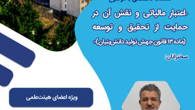 نشست تخصصی «اعتبار مالیاتی و نقش آن در حمایت از تحقیق و توسعه (ماده 13 قانون جهش تولید دانشبنیان)» تاریخ…