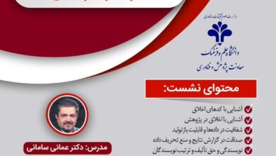 نشست تخصصی مجازی «اصول اخلاقی در نشر آثار علمی» تاریخ برگزاری: 10 آذرماه 1404 برگزار کننده: دانشگاه علم و فرهنگ…