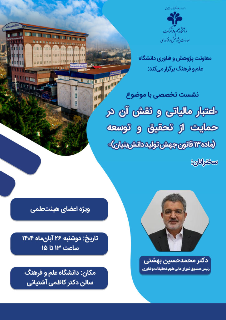 نشست تخصصی «اعتبار مالیاتی و نقش آن در حمایت از تحقیق و توسعه (ماده 13 قانون جهش تولید دانش‌بنیان)»