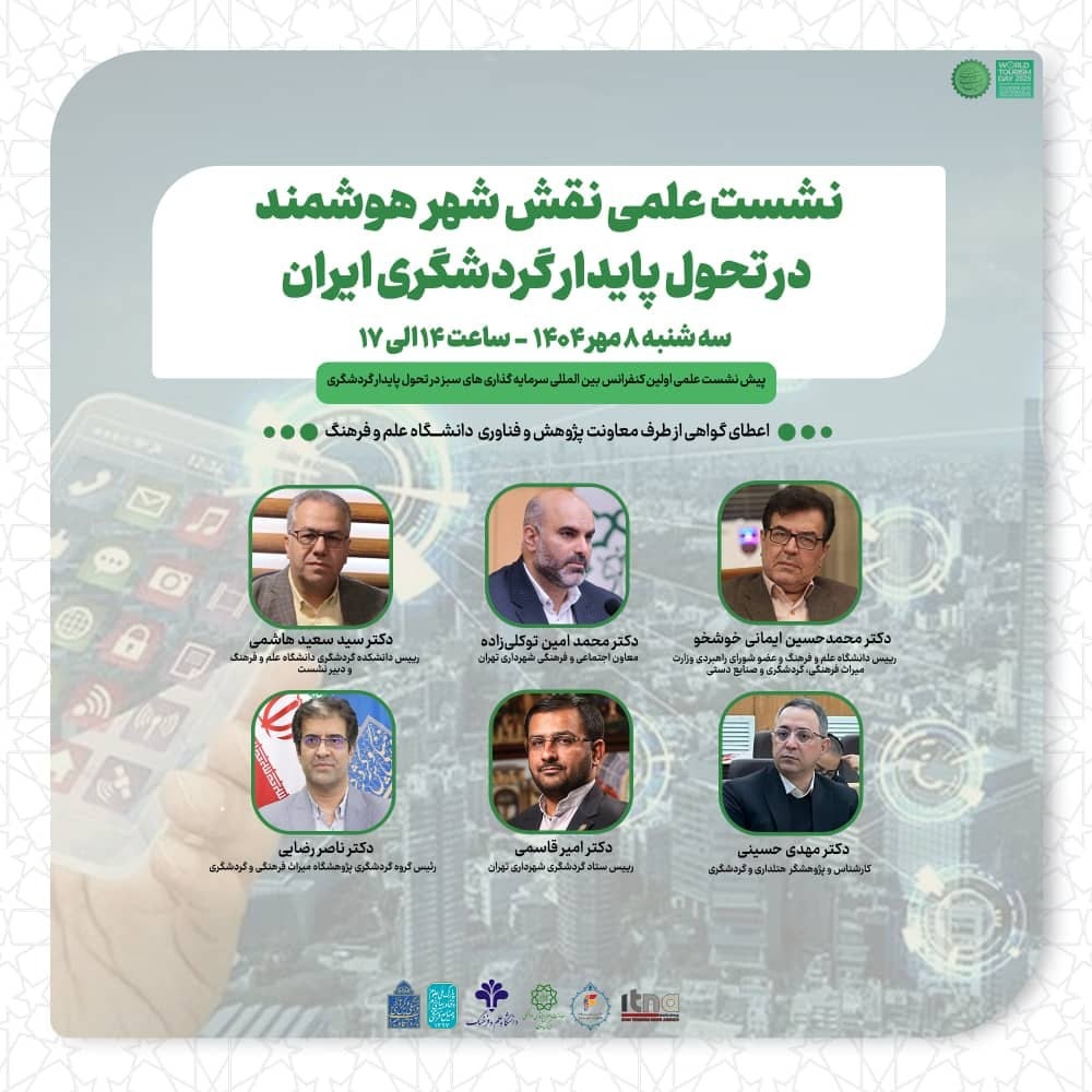 08مهر2:00 ب.ظ5:00 ب.ظنشست علمی نقش شهر هوشمند در تحول پایدار گردشگری ایران