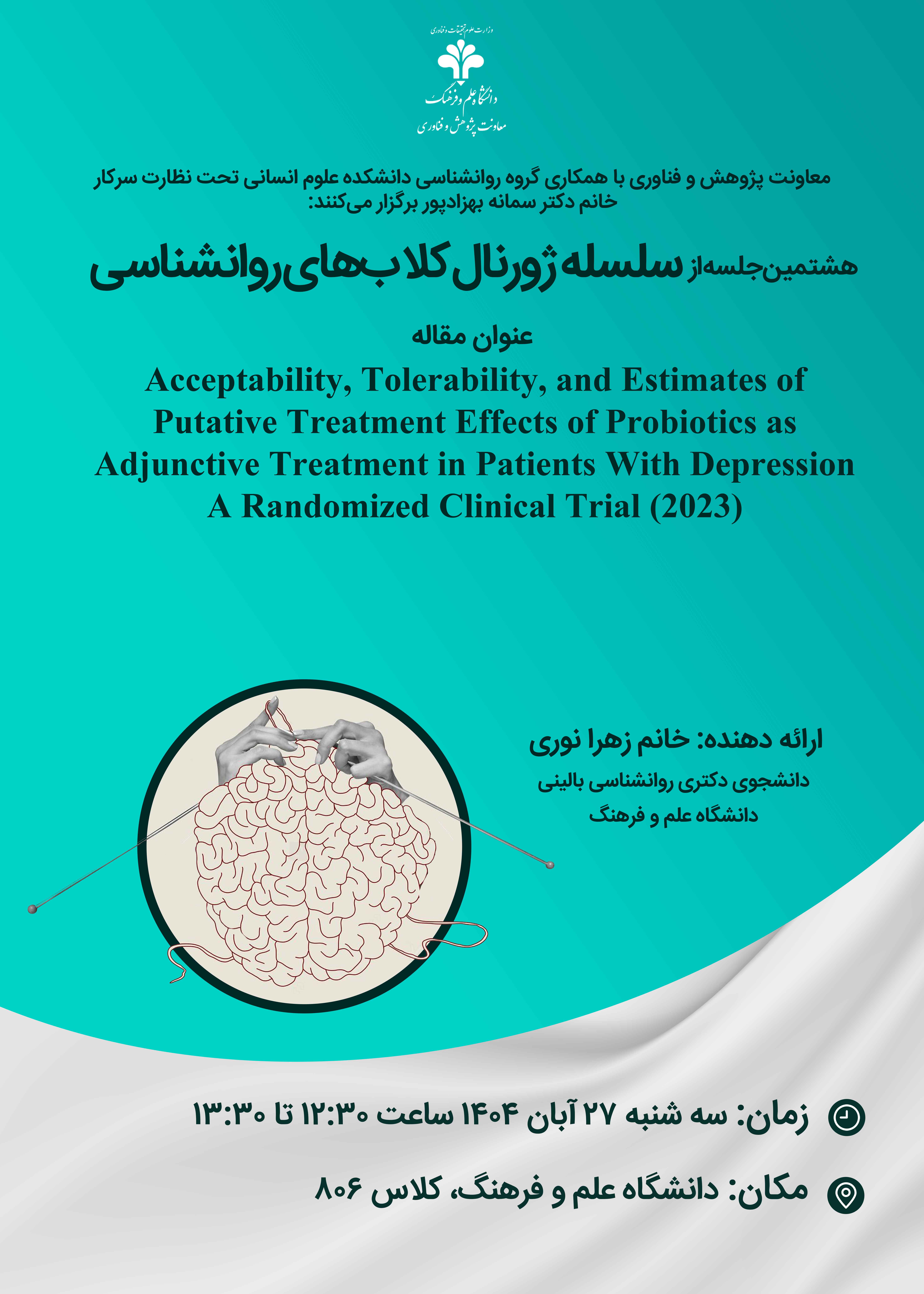 27آبان12:30 ق.ظ1:30 ب.ظهشتمین جلسه از سلسله ژورنال‌کلاب‌های روان‌شناسی