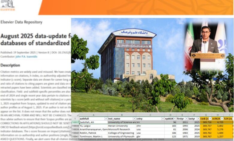 اعضای هیئتعلمی دانشگاه علم و فرهنگ در فهرست دانشمندان دو درصد برتر جهان